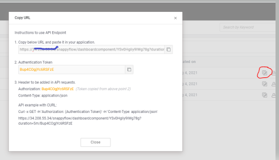 Click on âExport API Endpointâ option in the component and create component URL for all 3 components for interval, say Last 5 mins.